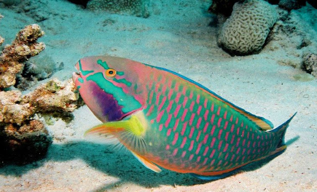 Theh blue-cheeked butterflyfish looks exactly like a hot water bottle I used to have. In saying that, wow these fish are amazing! :D